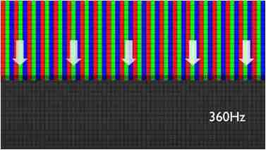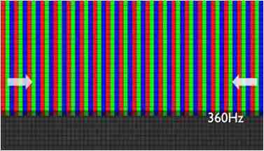 传统液晶驱动是从左到右单向进行,,,在画面更新速度愈来越愈快的情况下,,位于驱动线路末端的右下角区域,,画素的闸极来不及在短时间内获得足够电压,,,,无法显示出正确的颜色资讯。。。