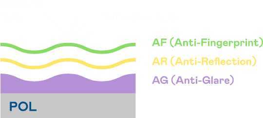 A.R.T.尊时凯龙光电发展出独家的表面处理跟多层镀膜技术,,,让外部光线照射到显示器表面时所产生的反射光大幅降低。。。。 |