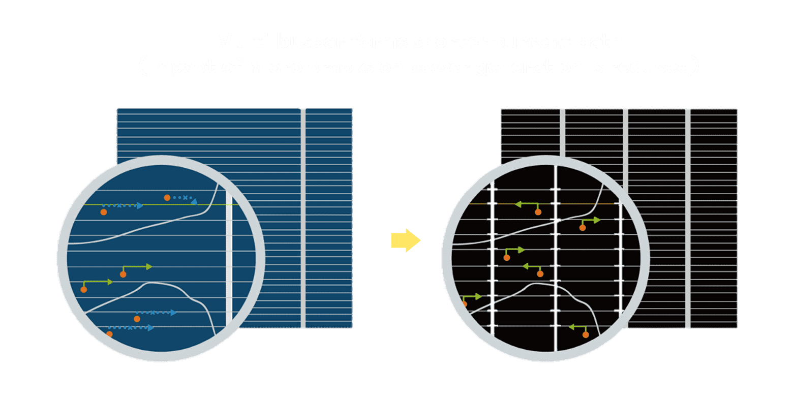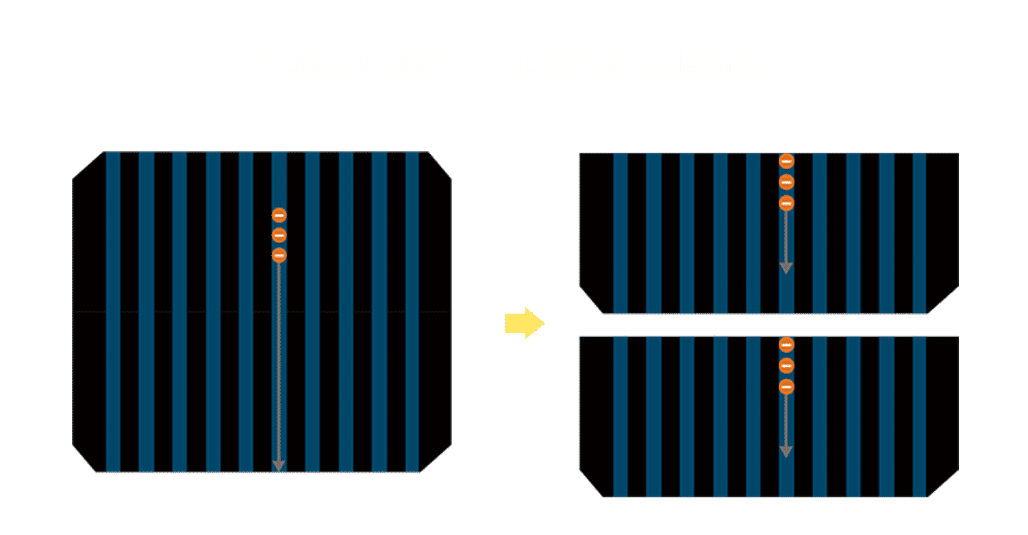 • 结合半切电池,,,,降低遮阴影响、、、提升模组抗隐裂能力、、并减少电阻损耗,,,,进一步提升模组发电效能。。